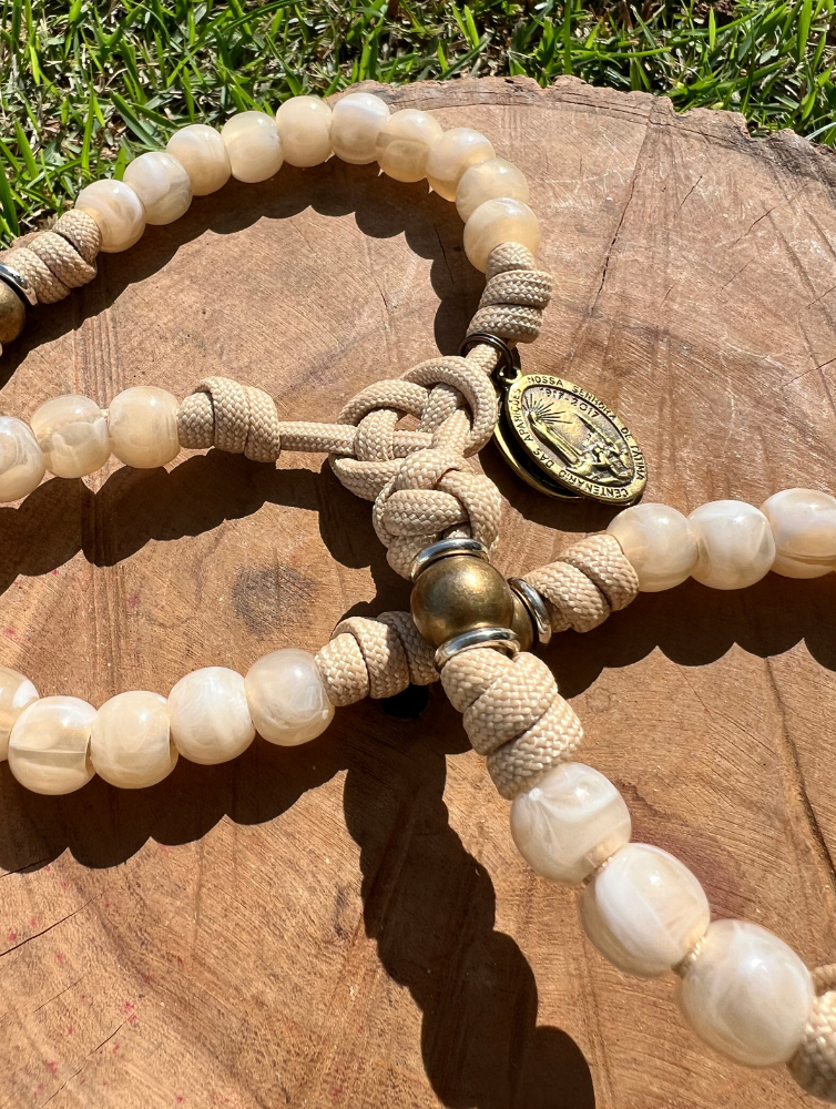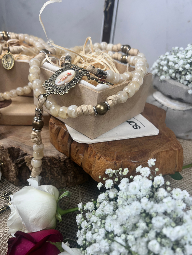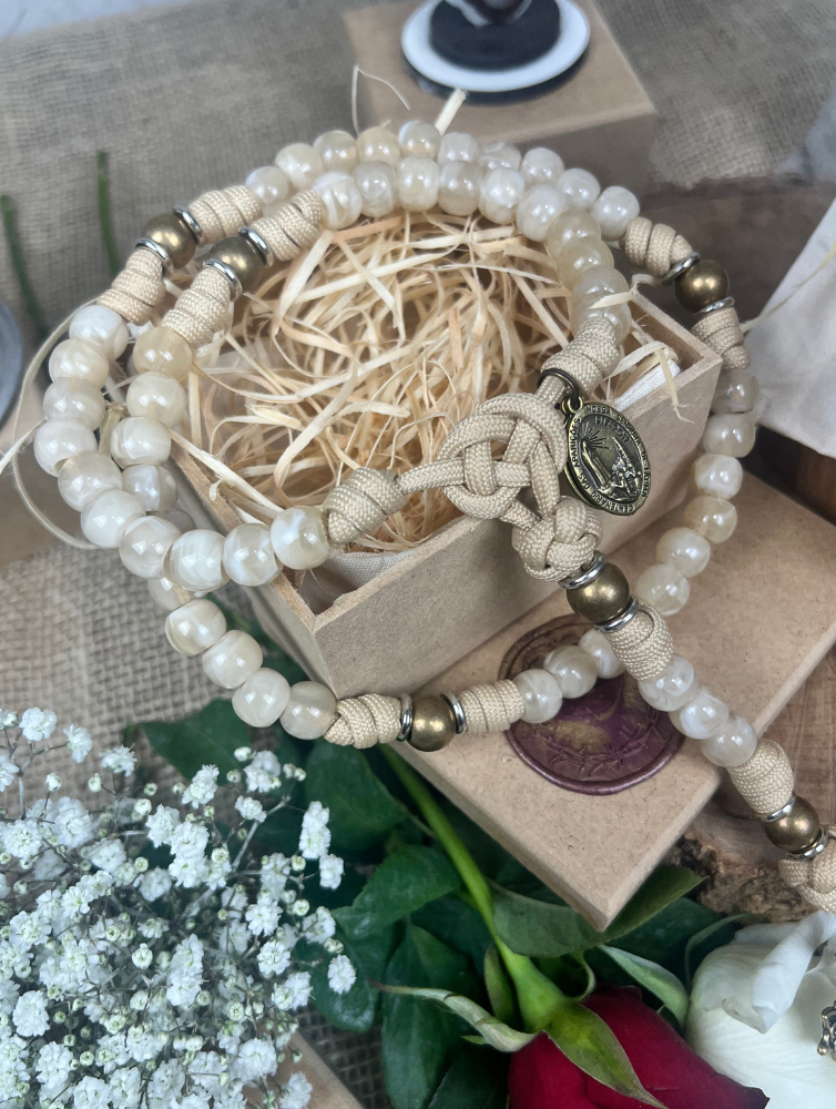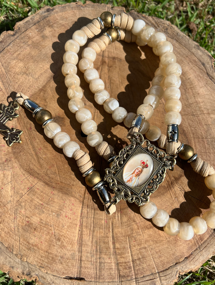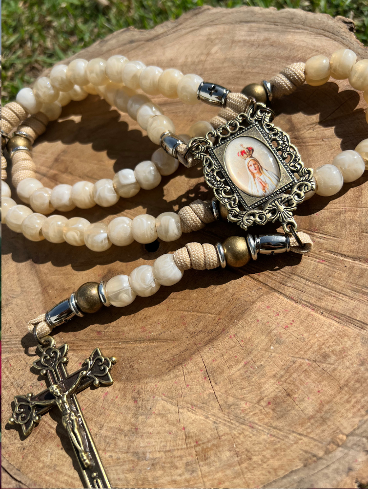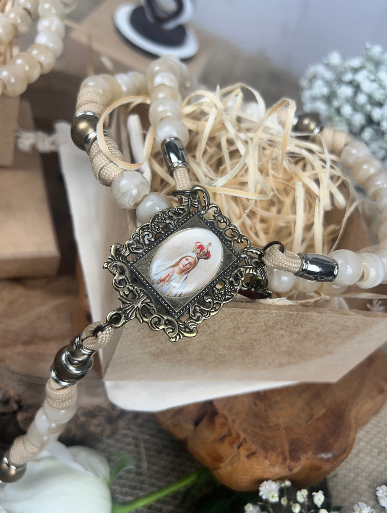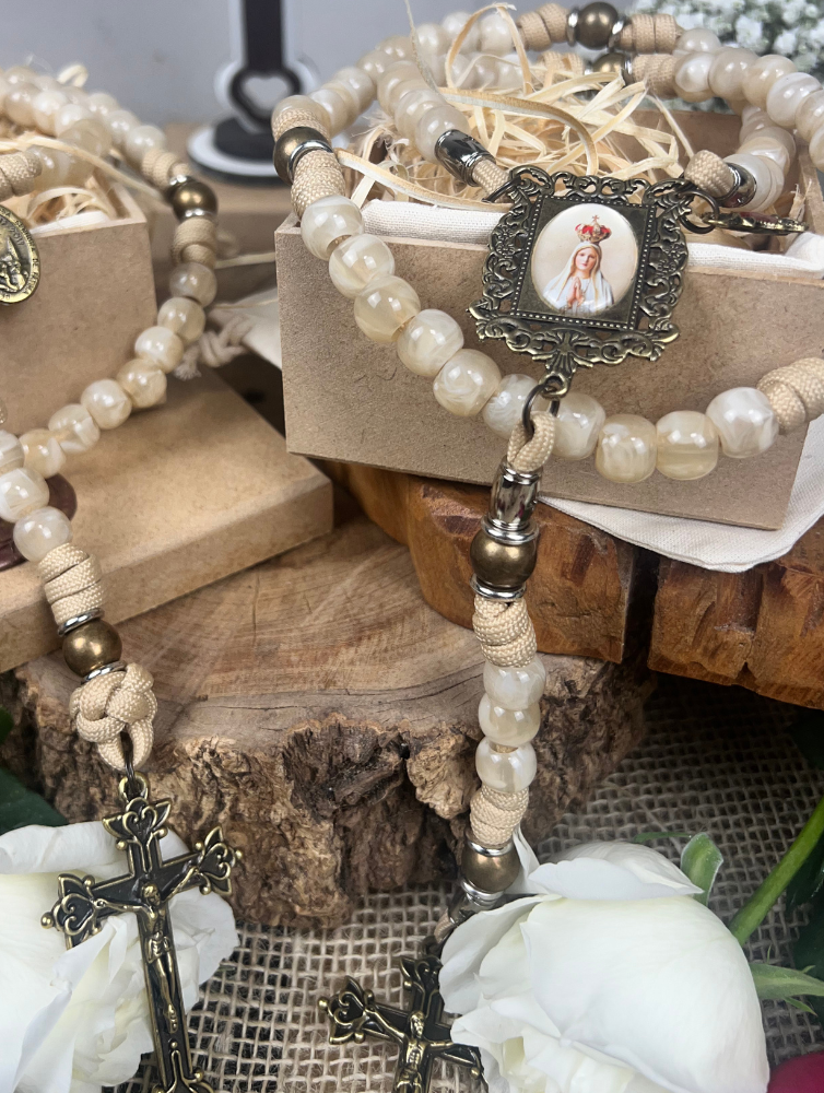 Inspirado nas aparições de 1917, este terço foi criado para quem deseja viver com mais intensidade a devoção a Nossa Senhora de Fátima. Com contas suaves ao toque, montadas em fio paracord ultra resistente, ele carrega a beleza e a firmeza da fé católica.